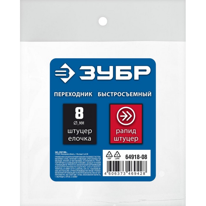 Переходник штуцер «елочка» 8 мм - рапид штуцер с обжимным хомутом ЗУБР Профессионал 64918-08