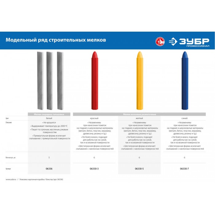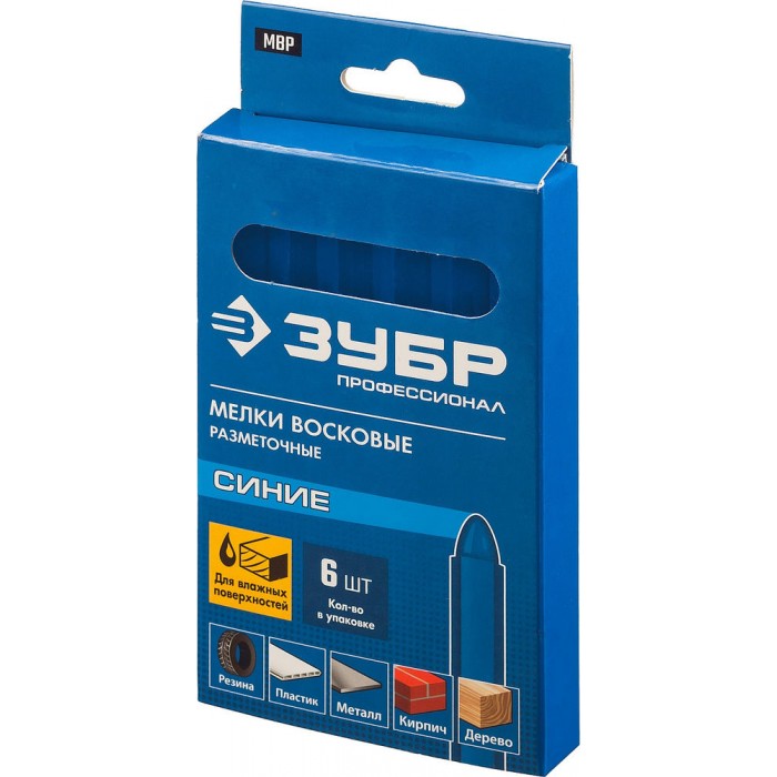 Мелки разметочные восковые синие 6 шт ЗУБР 06330-7