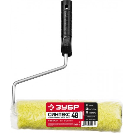 Валик малярный 48 х 180 мм, бюгель 8 мм, ворс 18 мм, полиакрил, все виды ЛКМ Профессионал СИНТЕКС ЗУБР 03501-18_z02