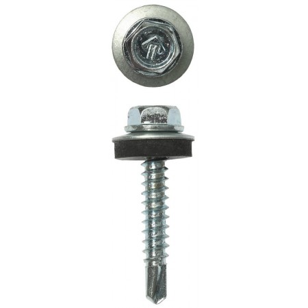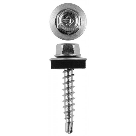 Кровельные саморезы изготовлены из стального прутка с высоким содержанием углерода. Контроль за геометрией самореза начинается с калибровки прутка и заканчивается тщательной проверкой размеров готового изделия. Нормативная твердость стали достигается термической обработкой. Поверхностная твердость мин. 560HV, твердость в сердцевине 240-425HV. Шайба с прокладкой EPDM плотно прижимается к кровельному материалу, герметизируя просверленное отверстие. Шестигранная головка выдерживает большой крутящий момент и значительно облегчает вкручивание самореза. Геометрические размеры: диаметр шайбы (Dw) - 13.90-14.15мм, толщина прокладки (Ar) - 2мм, Размер под ключ (S) - 7.8-7.9мм, диаметр резьбы (D) - 4.75-4.95мм, диаметр сверла (dp) - 2.8-2.9мм, длина сверла (ds) - 4.0-4.8мм, шаг резьбы (Pi) - 2.12мм.