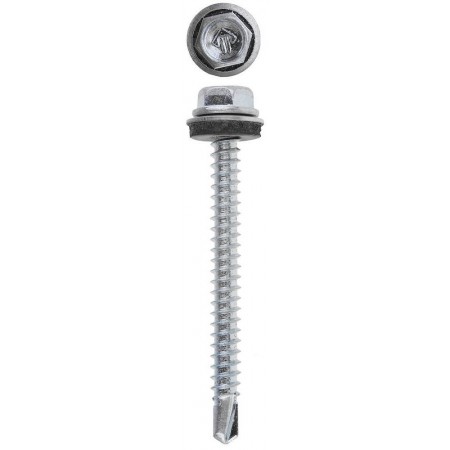 Кровельные саморезы изготовлены из стального прутка с высоким содержанием углерода. Контроль за геометрией самореза начинается с калибровки прутка и заканчивается тщательной проверкой размеров готового изделия. Нормативная твердость стали достигается термической обработкой. Поверхностная твердость мин. 560HV, твердость в сердцевине 240-425HV. Шайба с прокладкой EPDM плотно прижимается к кровельному материалу, герметизируя просверленное отверстие. Шестигранная головка выдерживает большой крутящий момент и значительно облегчает вкручивание самореза. Геометрические размеры: диаметр шайбы (Dw) - 13.90-14.15мм, толщина прокладки (Ar) - 2мм, Размер под ключ (S) - 7.8-7.9мм, диаметр резьбы (D) - 4.75-4.95мм, диаметр сверла (dp) - 2.8-2.9мм, длина сверла (ds) - 4.0-4.8мм, шаг резьбы (Pi) - 2.12мм.