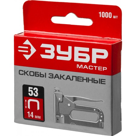 Скобы 14 мм, тип 53 (A/10/JT21), калибр 23GA, 1000 шт ЗУБР 31625-14