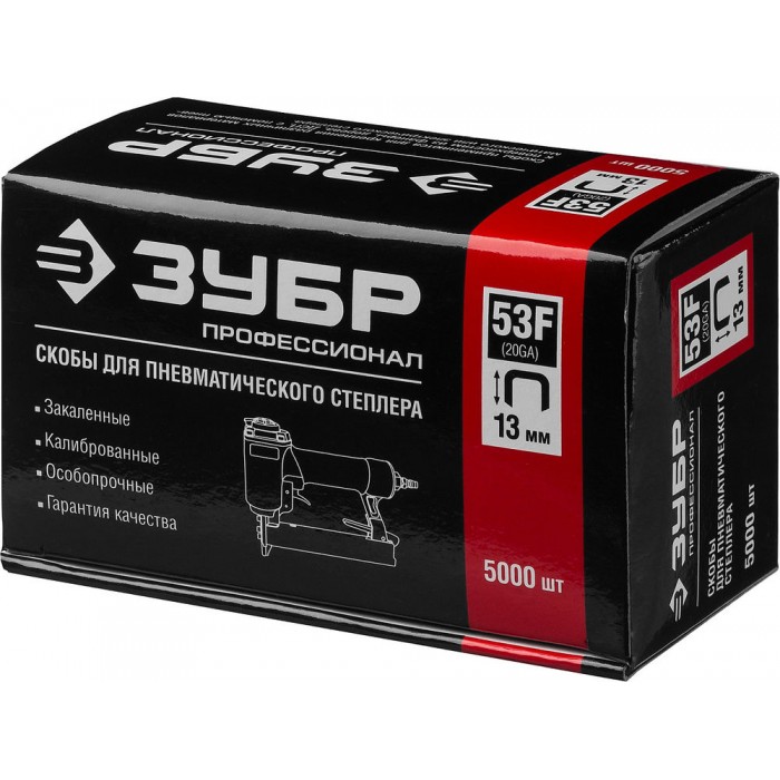 Скобы 13 мм, тип 53F (D/056), калибр 23GA, 5000 шт Профессионал ЗУБР 31950-13