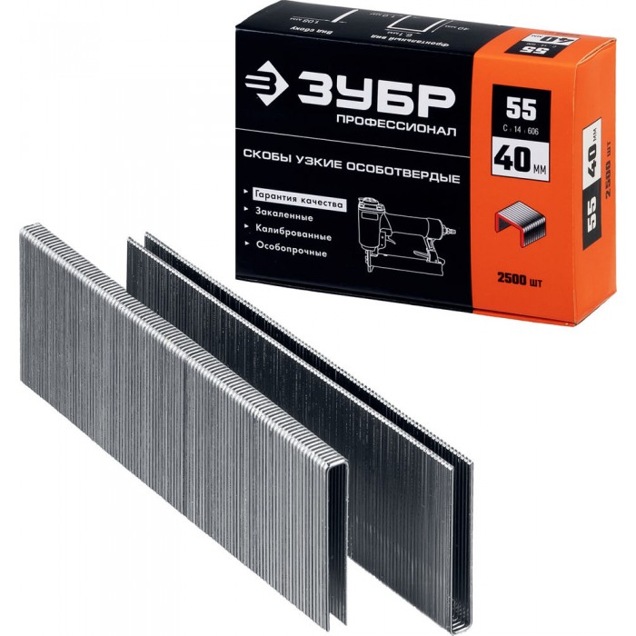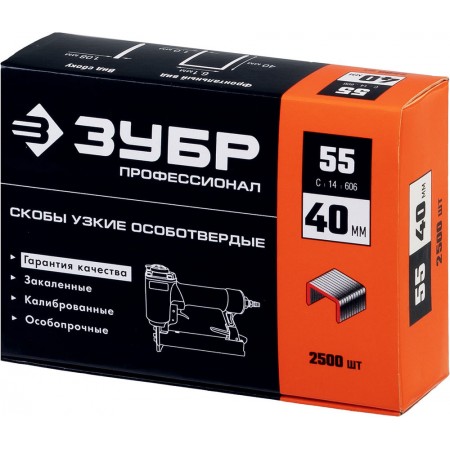 Скобы 40 мм, тип 55 (90/C), калибр 18GA, 2500 шт Профессионал ЗУБР 31855-40