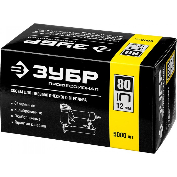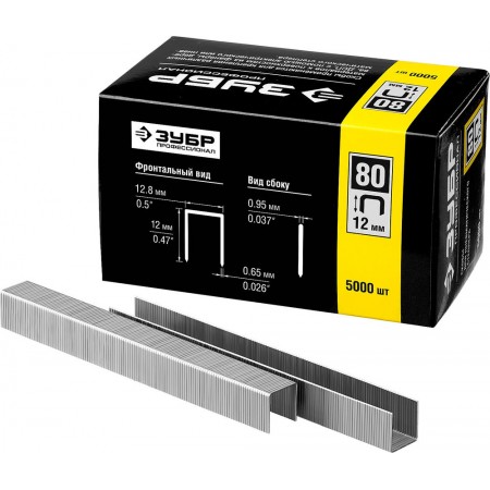 Скобы 12 мм, тип 80 (BeA/Prebena A/Senco AT), калибр 21GA, 5000 шт Профессионал ЗУБР 31880-12
