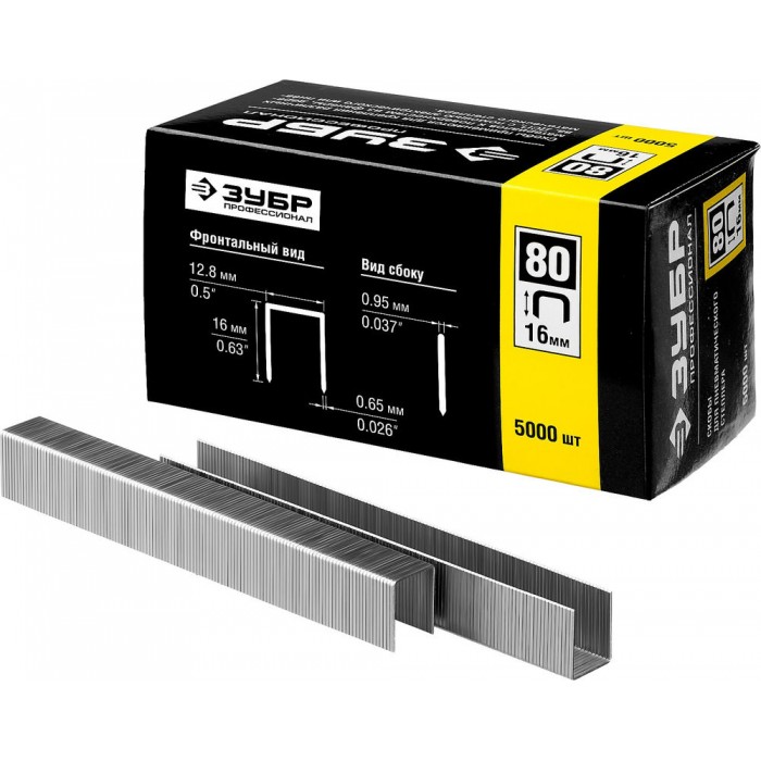 Скобы 16 мм, тип 80 (BeA/Prebena A/Senco AT), калибр 21GA, 5000 шт Профессионал ЗУБР 31880-16
