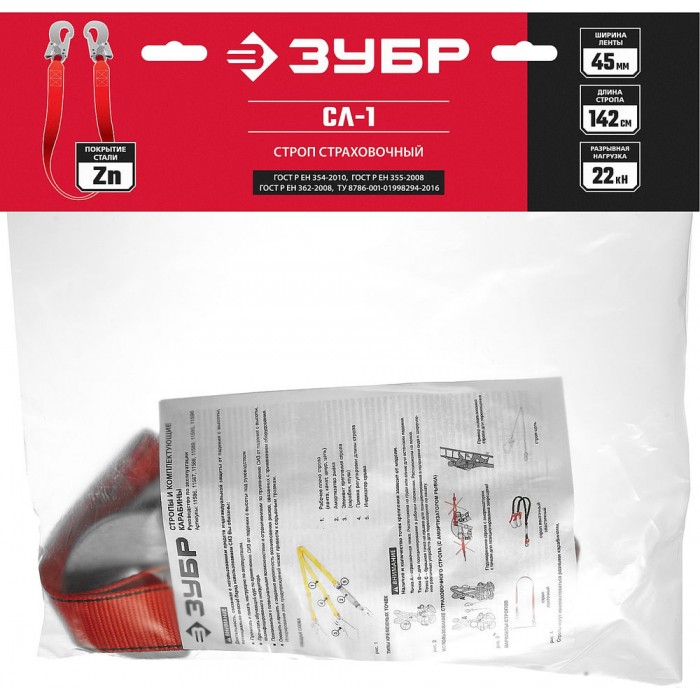 Строп одноплечный 1.42 м с карабинами из оцинкованной стали СЛ-1 ЗУБР 11589