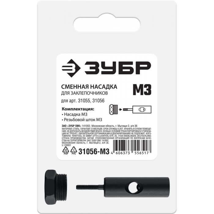 Насадка сменная М3 для заклепочников 31055, 31056 ЗУБР 31056-M3