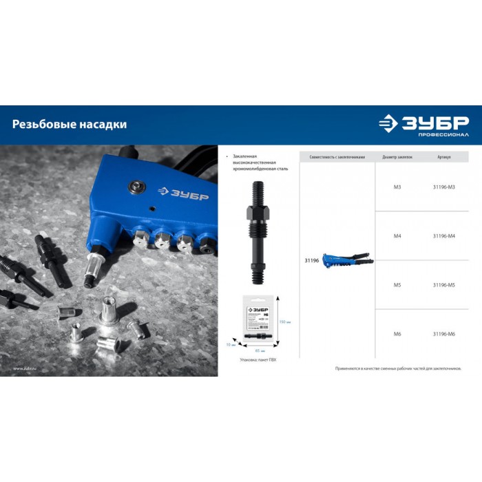 Насадка сменная М6 для заклепочника К-М6 ЗУБР 31196-M6
