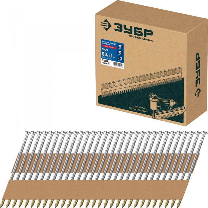Гвозди реечные рифленые оцинкованные SN21 90 x 3.1 мм, 2010 шт ЗУБР 305396-90
