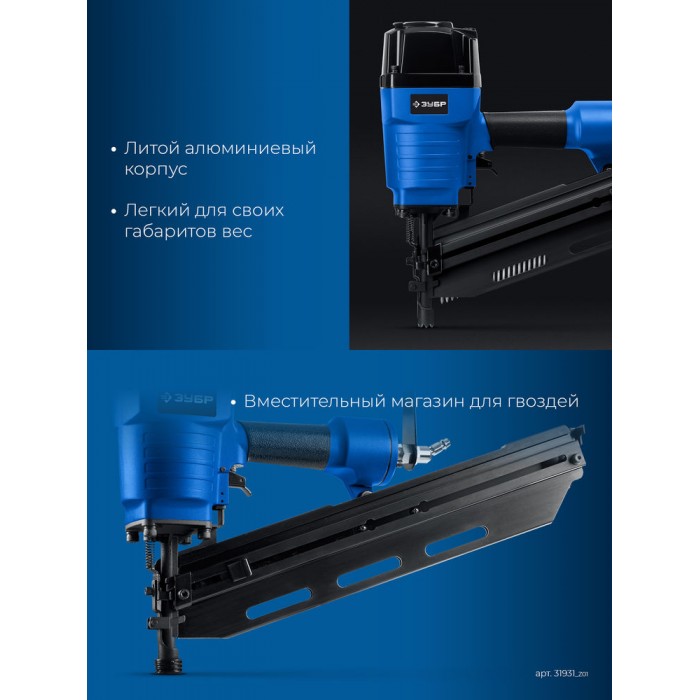 Профессиональный нейлер для забивания гвоздей большой длины. Широкий диапазон применений, вплоть до сборки каркасов деревянных домов.