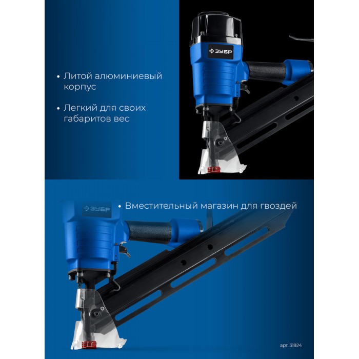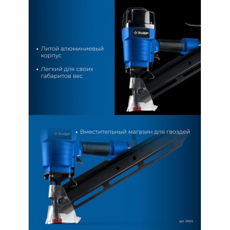 Профессиональный нейлер для забивания гвоздей большой длины. Широкий диапазон применений, вплоть до сборки каркасов деревянных домов.