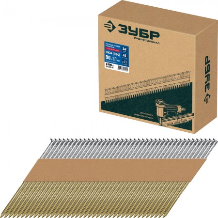 Для сборки деревянных конструкций, крепления тонколистового металла до 0.9 мм. В каркасном домостроении используются для сборки каркаса дома и установки черновых полов. Монтаж производится при помощи гвоздезабивного пистолета (нейлера) ЗУБР SN34-90 (арт. 31924), ЗУБР SN34-90A (арт. 31925) или аналогичного, рассчитанного на работу с гвоздями в кассетах с углом наклона 34 град. Во избежание повреждения кассеты на бумажной основе при установке в магазин нейлера не допускайте сильных ударов толкателя по кассете с гвоздями.