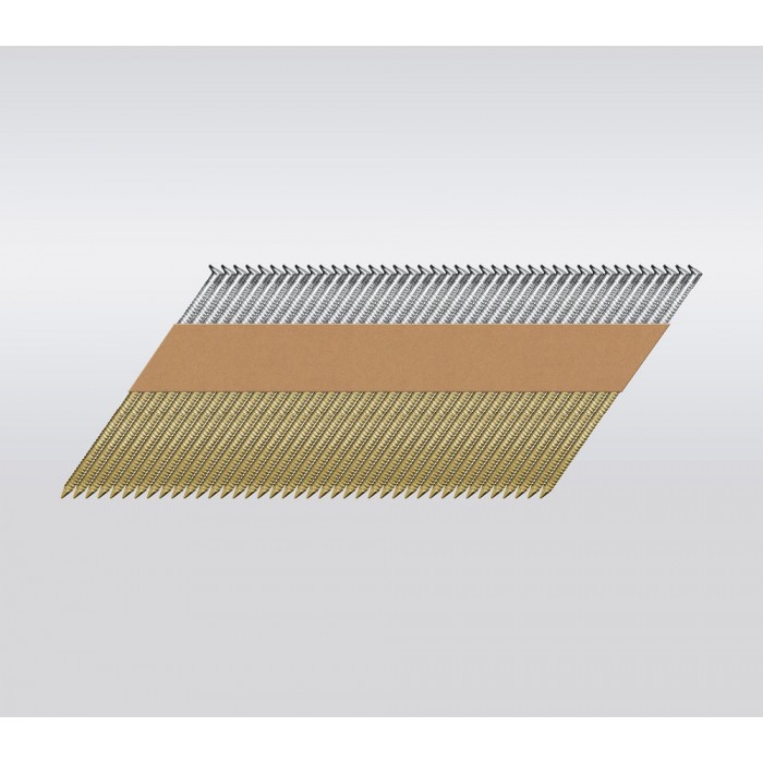 Реечные гвозди соединены в кассету под углом 34° и забиваются при помощи гвоздезабивного пистолета (нейлера). Рифленая поверхность гвоздей оптимально подходит для монтажа деревянных конструкций. Использование нейлера обеспечивает высокую скорость монтажа и удобство в работе.