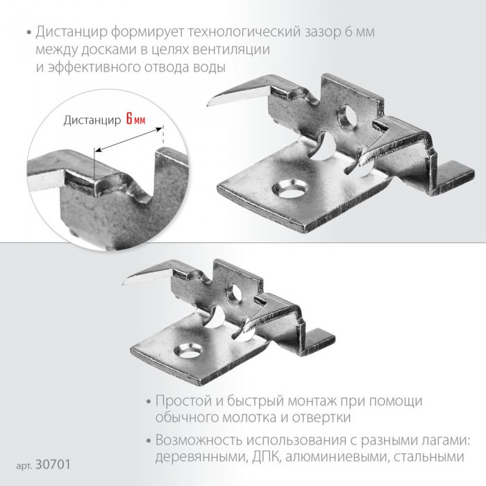 Основание крепежа обеспечивает дополнительную вентиляцию между лагой и доской