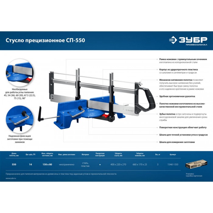 Стусло поворотное прецизионное 550 мм Профессионал СП-550 ЗУБР 15461-550