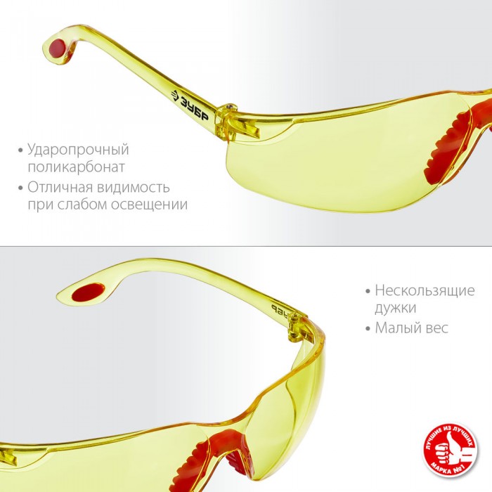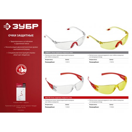 Защитные очки ЗУБР предназначены для защиты органов зрения от твердых летящих частиц.