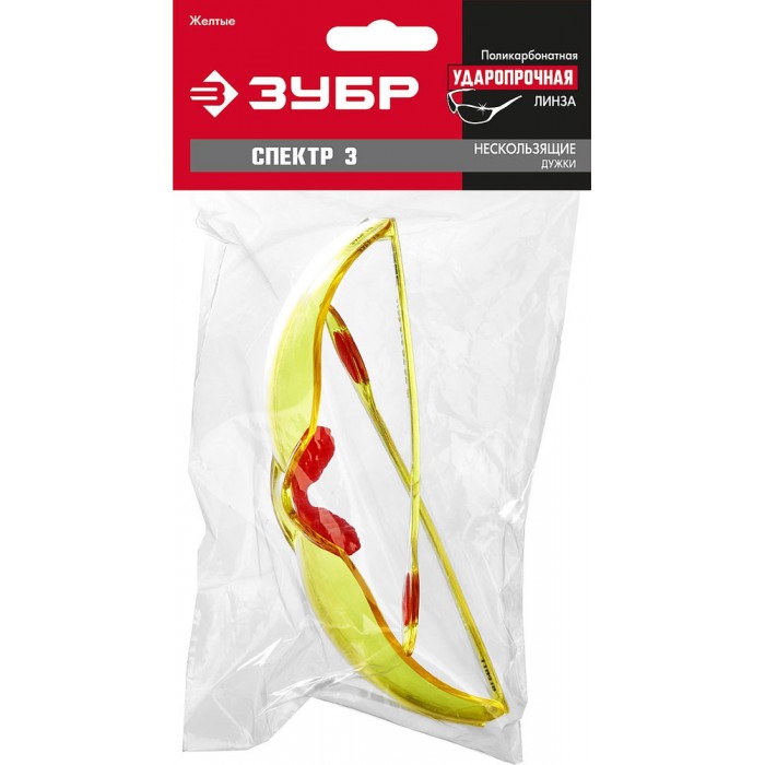 Очки защитные открытого типа СПЕКТР 3, жёлтые, широкое моностекло ЗУБР 110316
