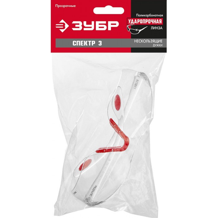 Очки защитные открытого типа СПЕКТР 3, прозрачные, широкое моностекло ЗУБР 110315
