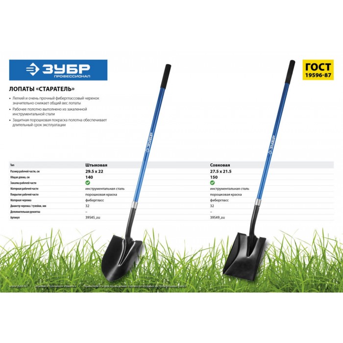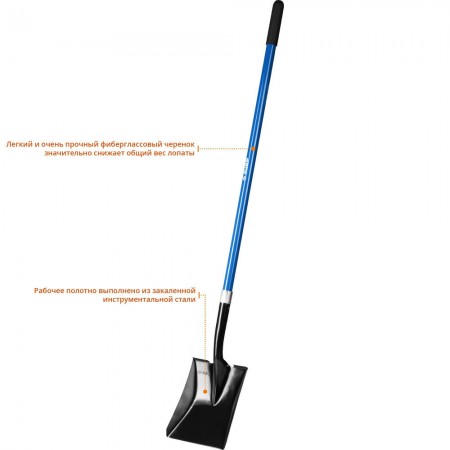 Лопата совковая прямоугольная 275 х 215 х 1500 мм, полотно 1.4 мм закалённое, фибергласовый черенок с резиновой ручкой ПРОФЕССИОНАЛ СТАРАТЕЛЬ ЗУБР 39549_z02