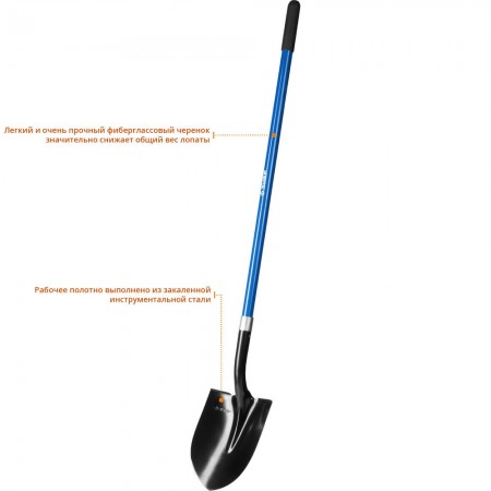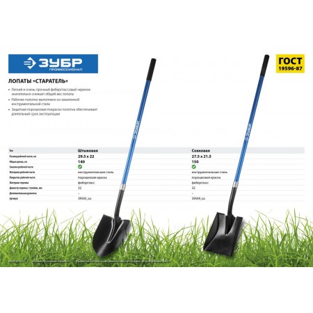 Лопата штыковая тип ЛСГ 295 х 215 х 1410 мм, полотно 1.5 мм закалённое, фибергласовый черенок с резиновой ручкой Профессионал СТАРАТЕЛЬ ЗУБР 39545_z02