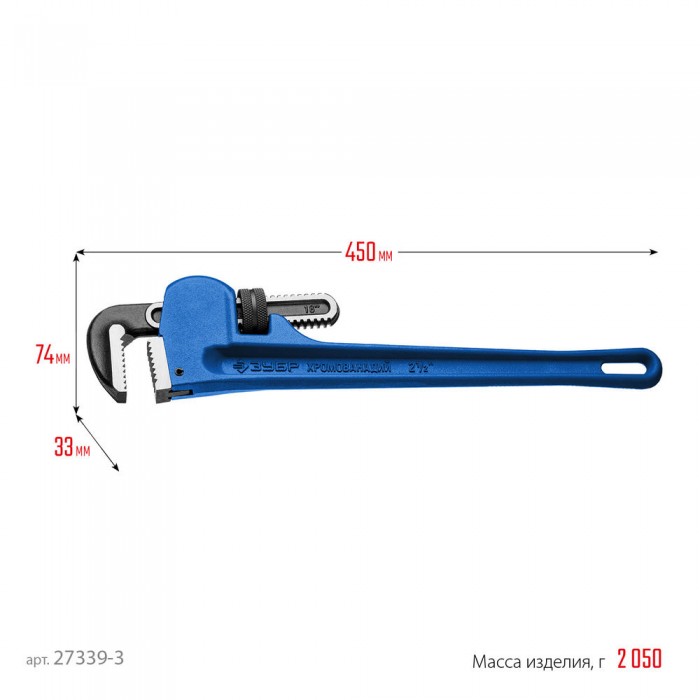 Ключ разводной трубный Стиллсон, 2.5", 450 мм, Профессионал (27339-3) ЗУБР