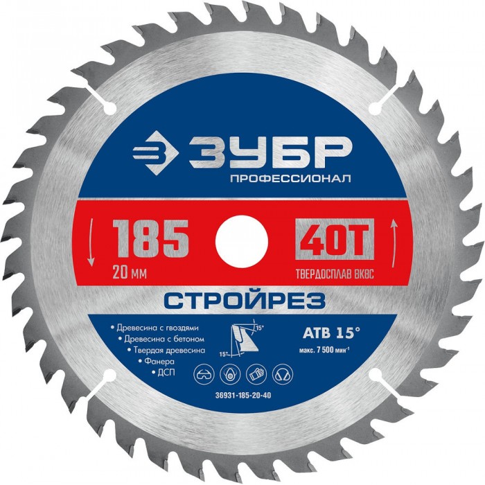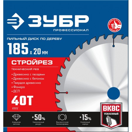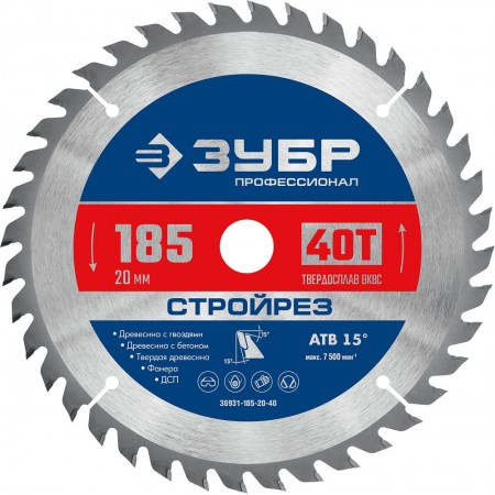 Диск пильный по строительной древесине 185 х 20 мм, 40Т Профессионал Стройрез ЗУБР 36931-185-20-40