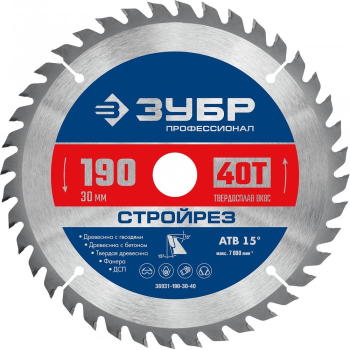 Диск пильный по строительной древесине 190 х 30 мм, 40Т Профессионал Стройрез ЗУБР 36931-190-30-40