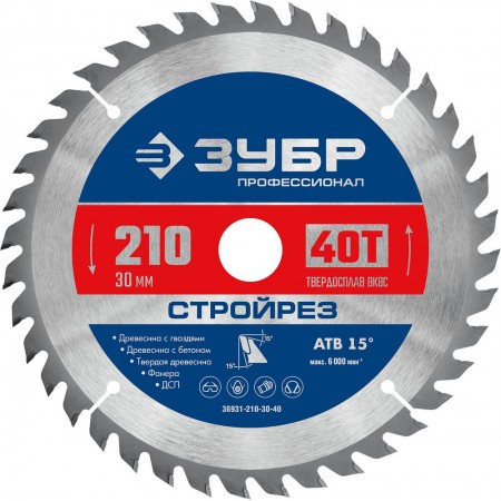 Диск пильный по строительной древесине 210 х 30 мм, 40Т Профессионал Стройрез ЗУБР 36931-210-30-40