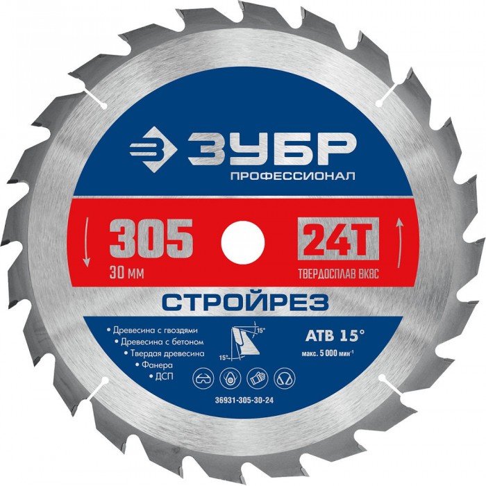 Диск пильный по строительной древесине 305 х 30 мм, 24Т Профессионал Стройрез ЗУБР 36931-305-30-24