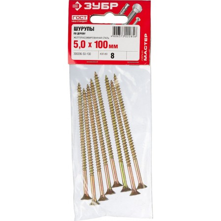 Саморез универсальный 100 х 5.0 мм, жёлтый цинк, 8 шт СУ-Ж ЗУБР 300396-50-100