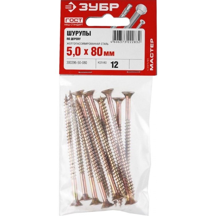 Универсальный саморез 80 x 5.0 мм, желтый цинк, 12 шт ЗУБР СУ-Ж 300396-50-080