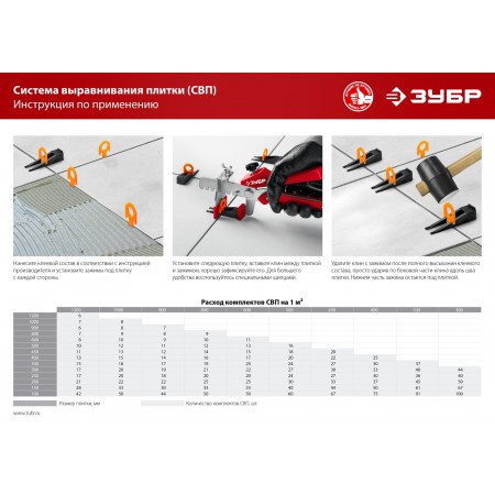 Система выравнивания плитки СВП зажим 1.0 мм, 500 шт ЗУБР 33861-500