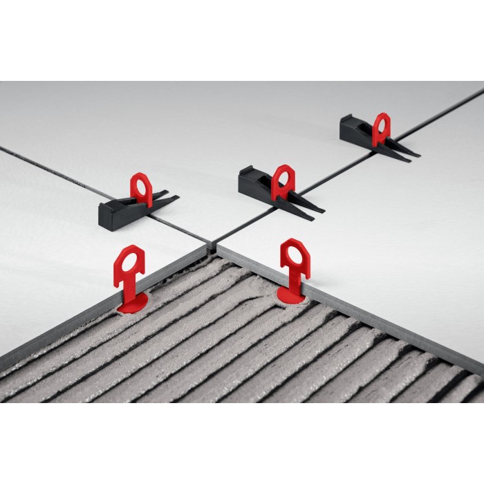 Изготовлен из высокопрочного пластика, что предотвращает растягивание во время высыхания клеевого состава и обеспечивает прочную фиксацию плитки. Имеет «технический шов» у основания, что обеспечивает точный отрыв у самого основания зажима. Место сцепления с клином сделано острым конусом, что гарантирует прочную фиксацию плитки.