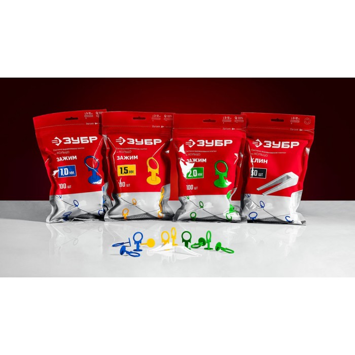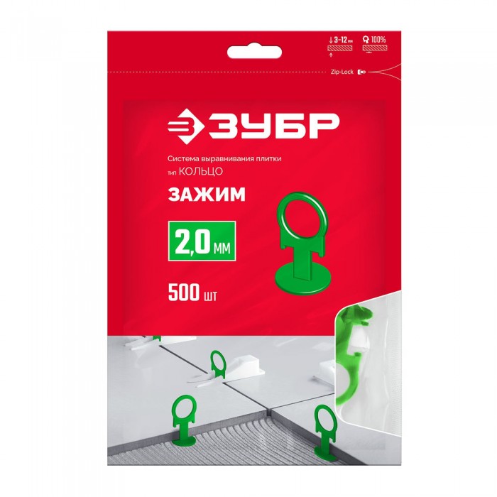 Система выравнивания плитки СВП КОЛЬЦО зажим 2.0 мм, 500 шт ЗУБР 33862-500