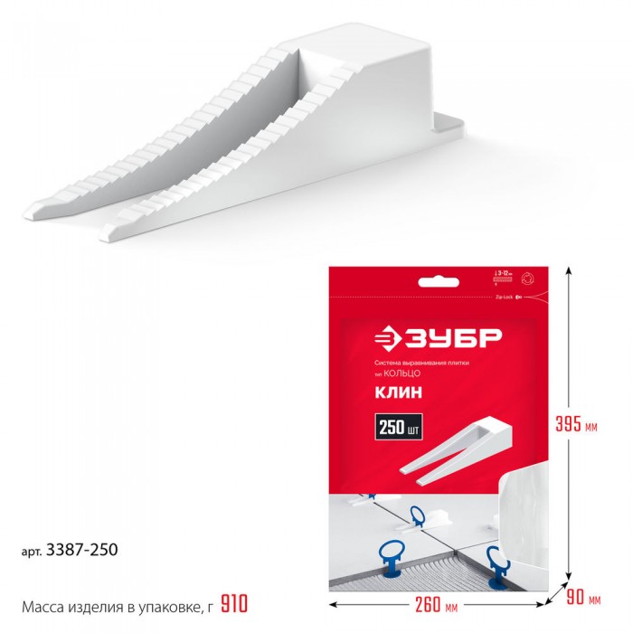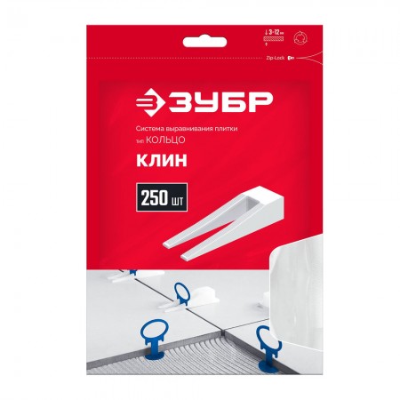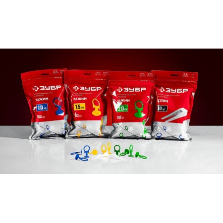 Предназначен для многократного использования, сделан из прочного пластика, он не деформируется при зажимании и надежно удерживает плитку в единой плоскости, обеспечивая отсутствие проседания во время высыхания плиточного клея. «Шаг зубьев» и форма клина позволяет работать с плиткой толщиной от 3 до 12 мм.