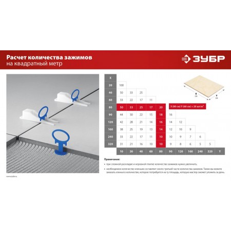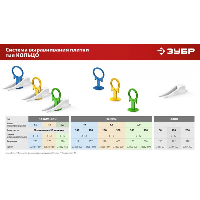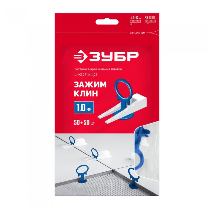 Система выравнивания плитки СВП КОЛЬЦО комплект 1.0 мм, зажим + клин, 50 + 50 шт ЗУБР 33831-H50_z01