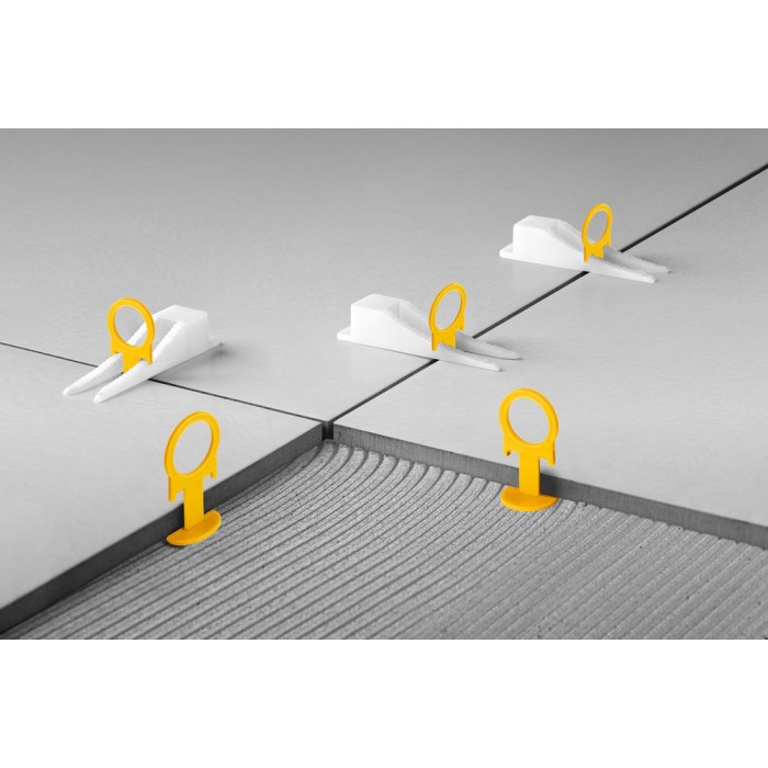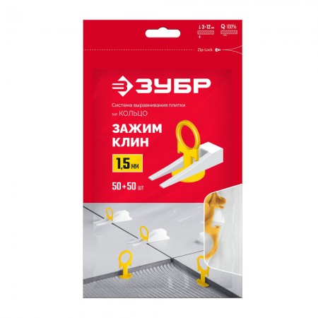 Система выравнивания плитки СВП КОЛЬЦО комплект 1.5 мм, зажим + клин, 50 + 50 шт ЗУБР 33833-H50