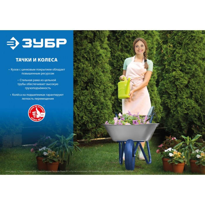 Садово-строительная тачка 90 л, 160 кг, одноколесная, пневматическое колесо ЗУБР Т-11 39962