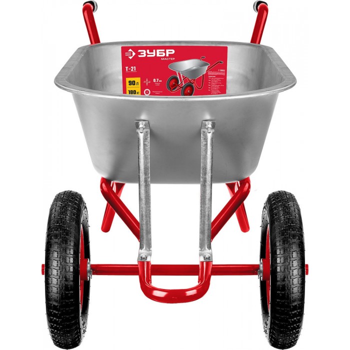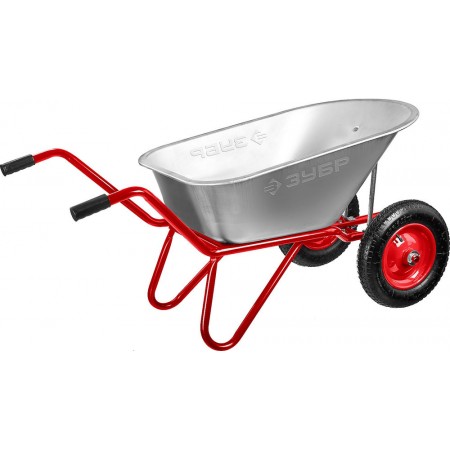 -Cтальной кузов толщиной 0,7мм и объемом 90л для сыпучих грузов имеет цинковое покрытие, обеспечивающее защиту тачки от внешних воздействий.,