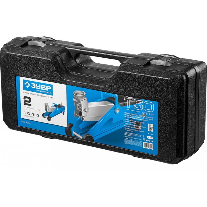 Подкатной домкрат с увеличенным подъемом в кейсе 2 т 130 - 380 мм Профессионал ЗУБР Т-50 43052-2-K