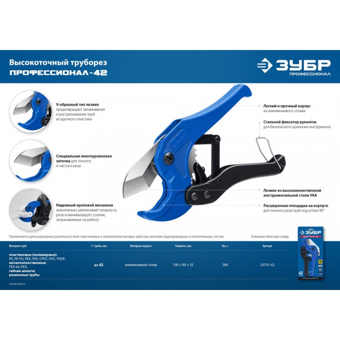 Труборез высокоточный до 42 мм по металлопластиковым и пластиковым трубам ЗУБР Т-500 Профессионал 23701-42_z02