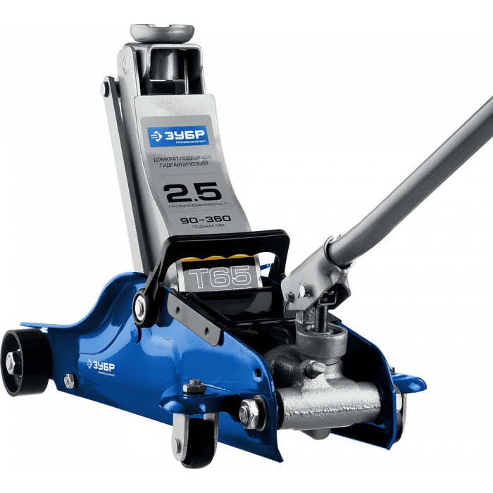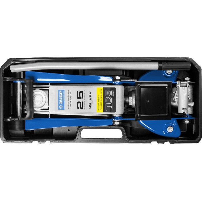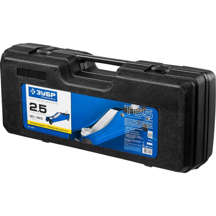 Подкатной домкрат с низким подхватом и поворотной ручкой в кейсе 2.5 т 90 - 360 мм Профессионал ЗУБР Т-65 43057-2.5-K
