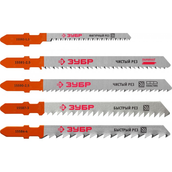 Полотна ЗУБР ″ЭКСПЕРТ″ для электролобзиков имеют увеличенную толщину рабочей части, что даёт повышенную устойчивость к излому и перегибу. Применяются на электрических лобзиках при резке массива древесины, многослойной фанеры и ДСП.