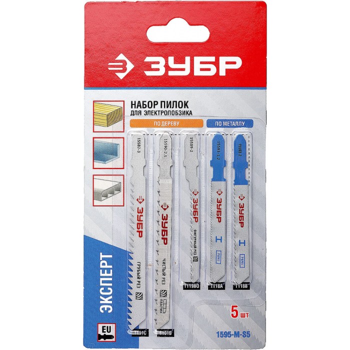 Полотна ЗУБР ″ЭКСПЕРТ″ для электролобзиков имеют увеличенную толщину рабочей части, что даёт повышенную устойчивость к излому и перегибу. Набор полотен применяются на электрических лобзиках при резке массива древесины, многослойной фанеры, ДСП и листового металла.