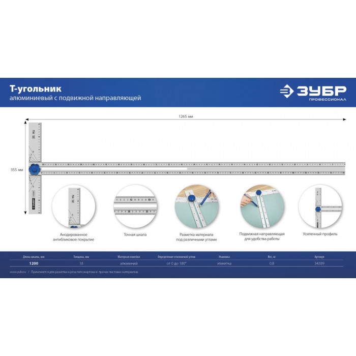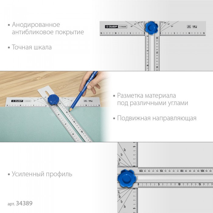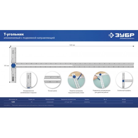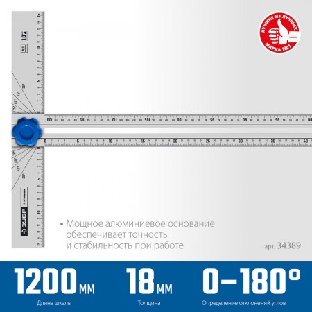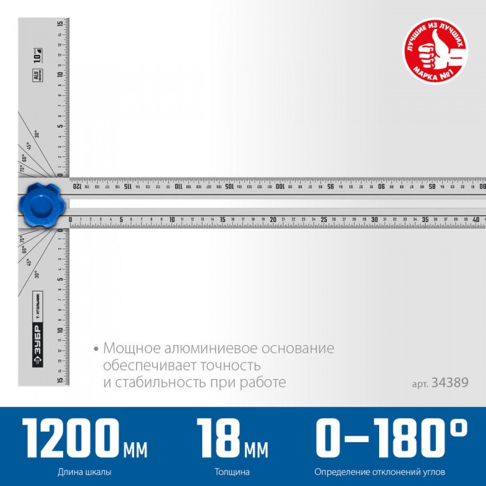 Т-угольник алюминиевый с подвижной направляющей ЗУБР Профессионал 34389