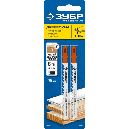 Полотна ЗУБР ″ЭКСПЕРТ″ для электролобзиков имеют увеличенную толщину рабочей части, что даёт повышенную устойчивость к излому и перегибу. Применяются на электрических лобзиках при резке массива древесины, многослойной фанеры и ДСП.