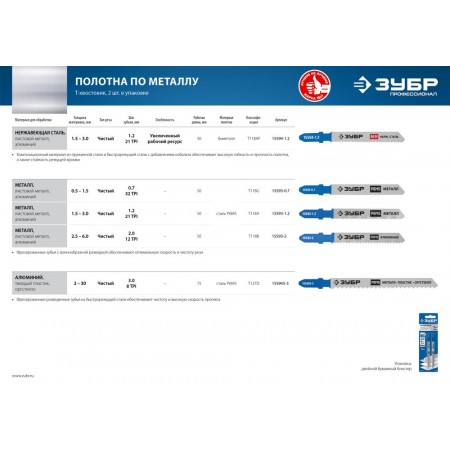 Полотна ЗУБР ″ЭКСПЕРТ″ для электролобзиков имеют увеличенную толщину рабочей части, что даёт повышенную устойчивость к излому и перегибу. Полотна применяются на электрических лобзиках при резке листового железа и цветных металлов.