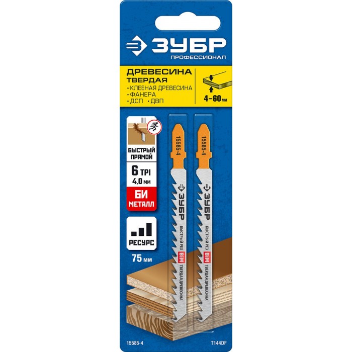 Полотна ЗУБР ″ЭКСПЕРТ″ для электролобзиков имеют увеличенную толщину рабочей части, что даёт повышенную устойчивость к излому и перегибу. Применяются на электрических лобзиках при резке массива древесины, многослойной фанеры и ДСП.