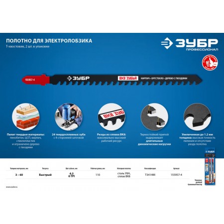 Полотна ЗУБР изготовлены из качественной высокоуглеродистой стали с использованием высокоточных технологий заточки твердосплавных зубьев.